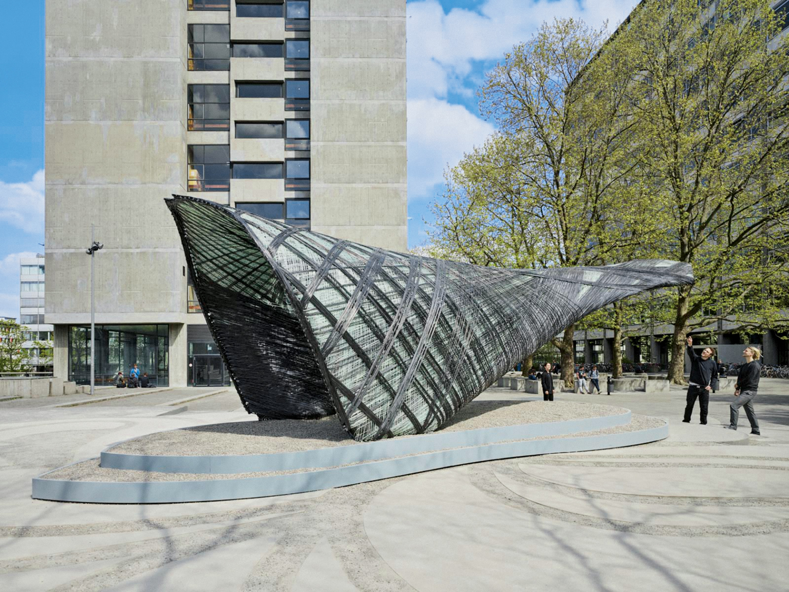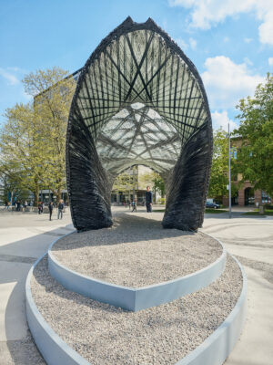 Im November 2012 realisierten das Institut für Computerbasiertes Entwerfen und Baufertigung (ICD) und das Institut für Tragkonstruktionen und Konstruktives Entwerfen (ITKE) der Universität Stuttgart einen temporären bionischen Versuchsbau aus faserbasiertem Verbundmaterial, der zusammen mit Studierenden im Rahmen einer einjährigen Forschungs- und Entwicklungszeit entworfen, geplant und ausgeführt wurde. An der Schnittstelle von Lehre und Forschung untersucht das Projekt die Übertragung biologischer Form- und Materialbildungsprinzipien der Außenskelette von Gliederfüßern (Arthropoden) als Ausgangspunkt für neue Konstruktionsformen in der Architektur.