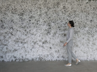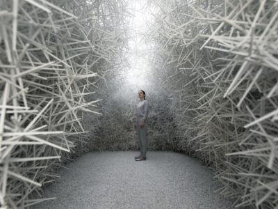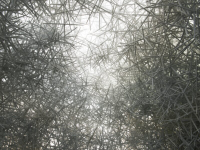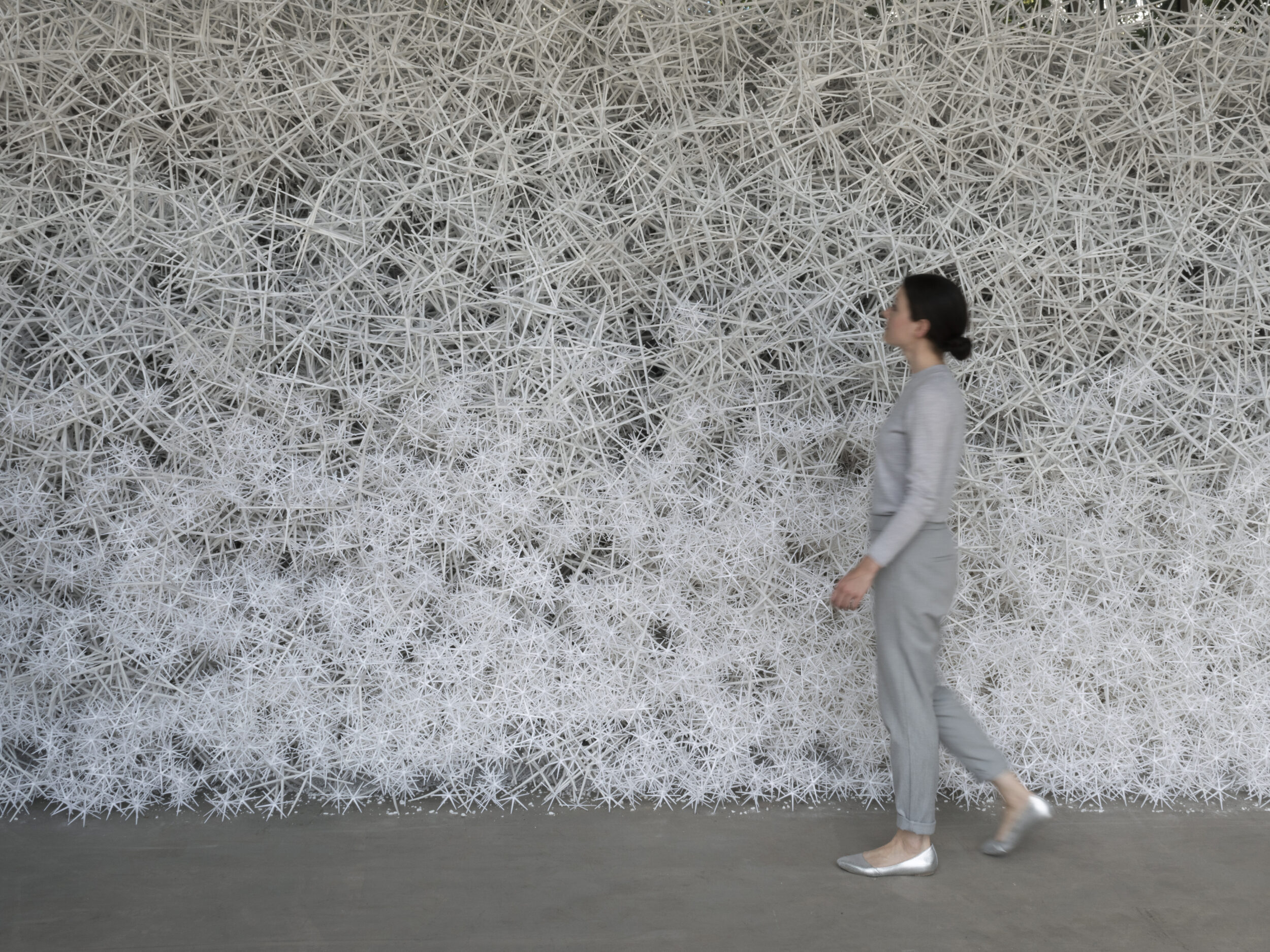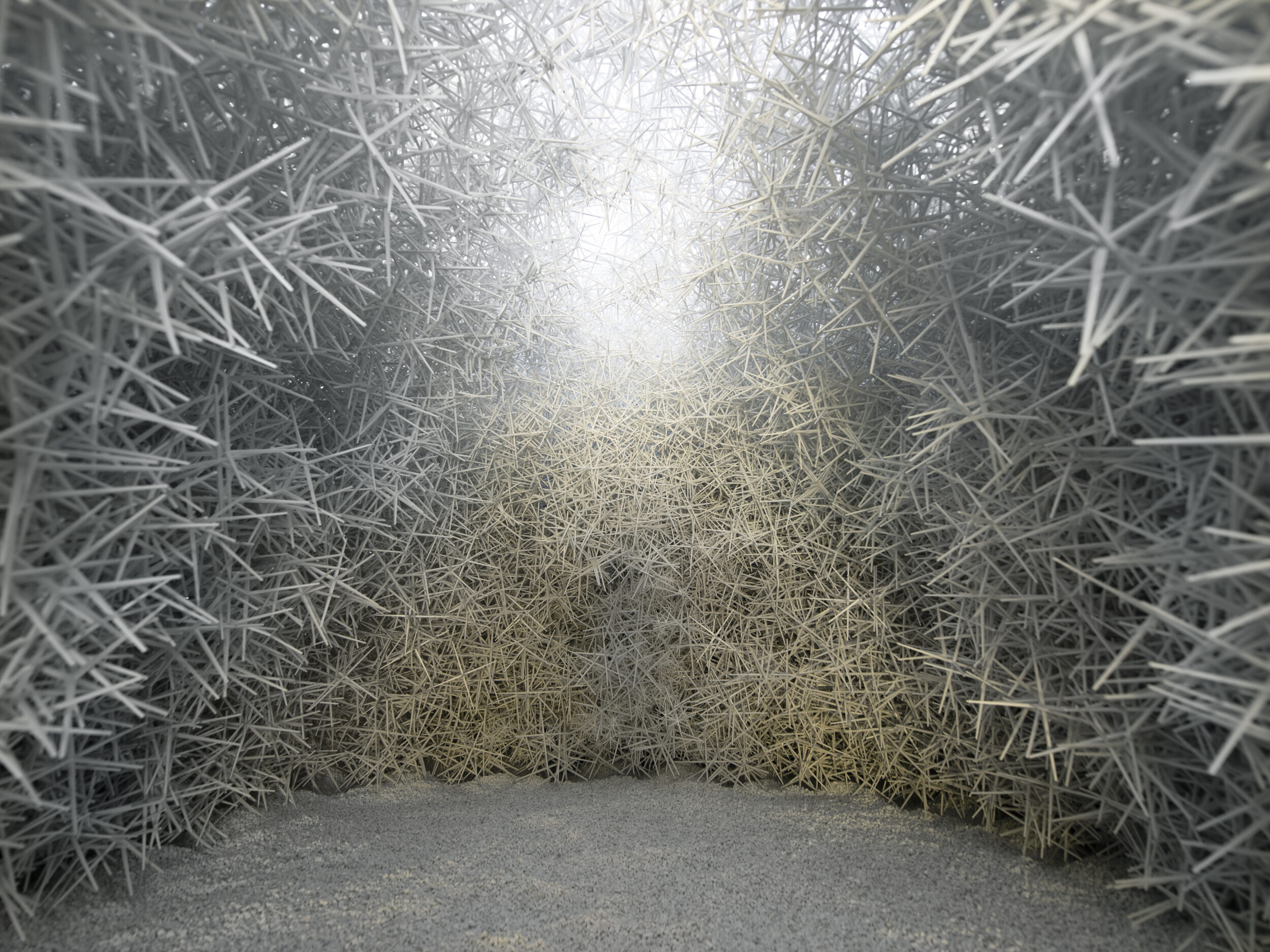 Das Installation »HygroScope – Meteorosensitive Morphology« am Centre Pompidou in Paris erschließt den Zugang zu einer neuartigen Verschränkung der Funktion eines sich selbst regulierenden, wetterfühligen architektonischen Systems und dessen ästhetischer Erfahrung. Entstanden an der Schnittstelle von Kunst, Architektur, Ingenieurswissenschaften und Biomimetik besteht die Installation aus einem überraschend einfachen System: Beruhend auf der Wirkungsweise biologischer Systeme reagiert die Installation auf Klimaveränderungen in der sie umgebenden, raumgroßen Vitrine durch selbsttätige Formveränderungen des Materials. Die hygroskopischen Eigenschaften von Holz, einem der ältesten Baustoffe überhaupt, werden dabei auf neuartige Weise als dem Material-innewohnender Sensor und Motor genutzt, der die Struktur in Abhängigkeit von der sie umgebenden Luftfeuchte automatisch öffnet und schließt. Diese Bewegungen und Anpassungen an sich verändernde Umweltbedingungen kommen ohne jegliche Mechanik, Elektronik oder zusätzlicher Energie aus. Das Material selbst ist die Maschine.